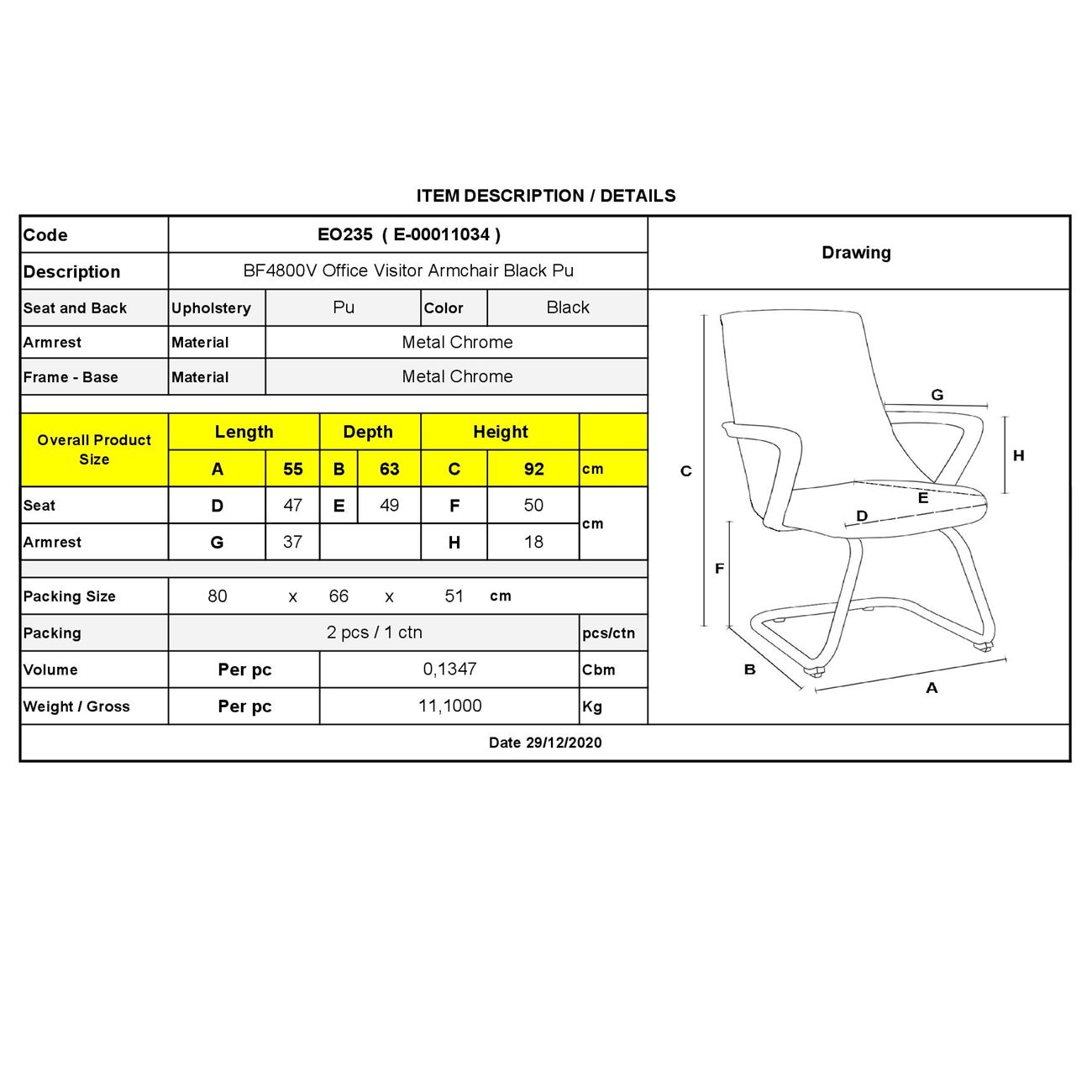 Η πολυθρόνα γραφείου επισκέπτη μέταλλο χρώμιο PU μαύρο BF4800V ΕΟ235 διαθέτει σκελετό από μέταλλο χρώμιο και επένδυση από τεχνητό δέρμα υψηλής ποιότητας προσφέροντας μια επαγγελματική λύση για κάθε εργασιακό χώρο.