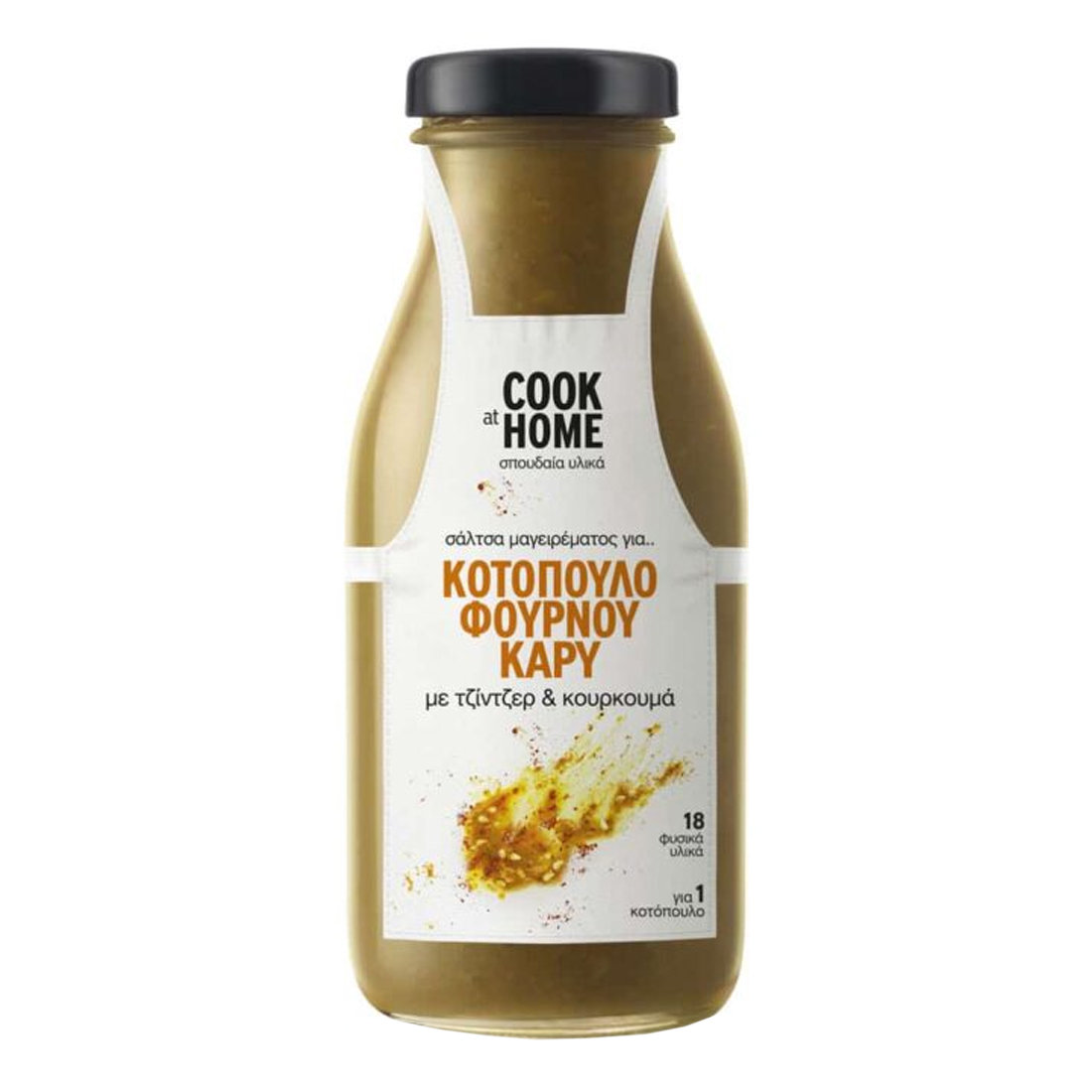 Δείτε όλα τα προϊόντα από Cook At Home Cook At Home σάλτσα κάρυ για κοτόπουλο φούρνου - 55695, πάντα ζουμερό και γευστικό! Το Cook At Home είναι μια πραγματική επανάσταση στις σάλτσες μαγειρέματος. Είναι ο νέος τρόπος για να μαγειρεύουμε κλασσικά και δημοφιλή πιάτα, όπως το κοτόπουλο με κάρυ, με μόλις δύο υλικά: το κοτόπουλο και τη σάλτσα μαγειρέματος-συνταγή για κοτόπουλο με κάρυ στο φούρνο, με όλα τα υλικά που χρειαζόμαστε σε ένα μπουκάλι!