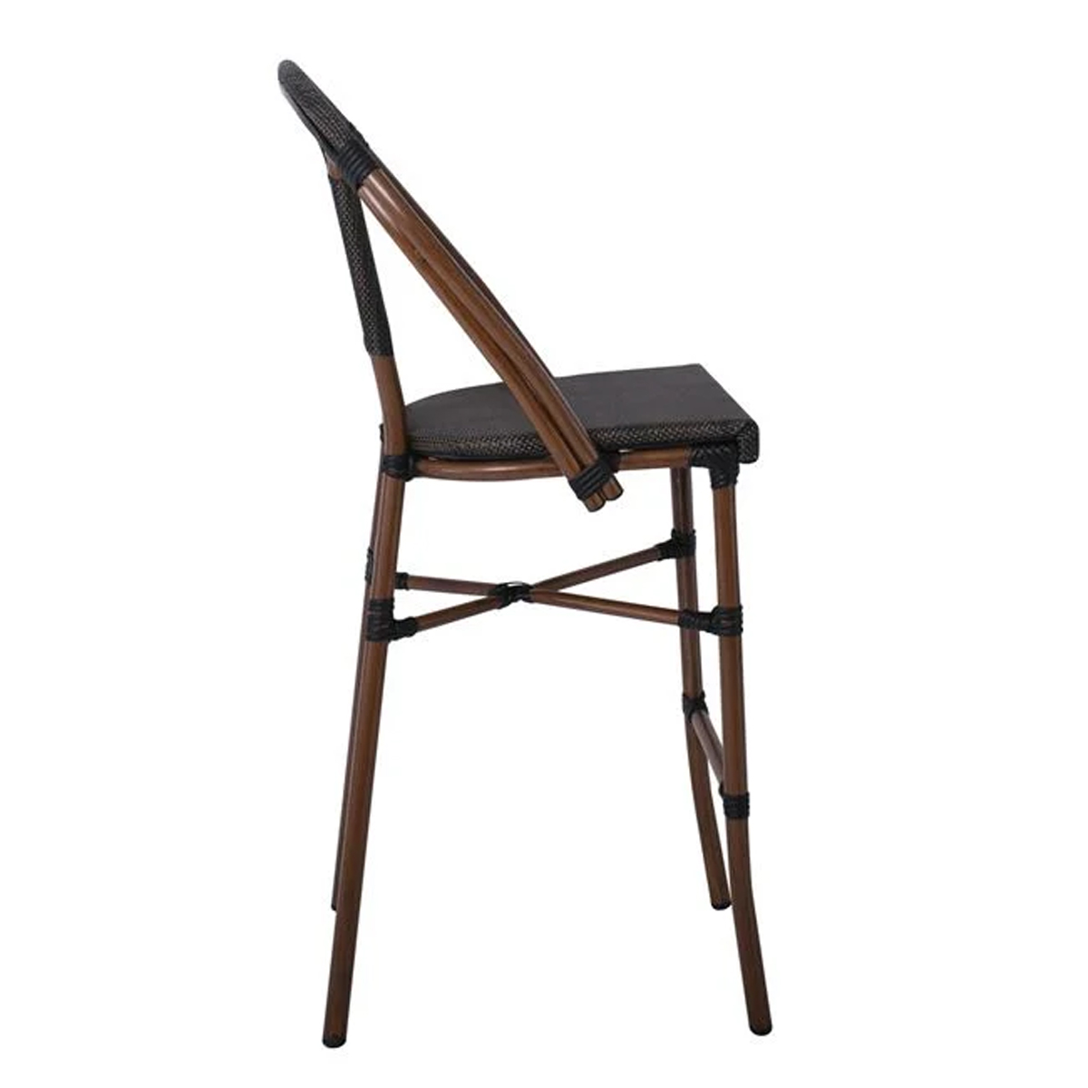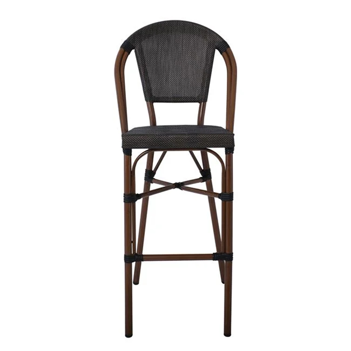 Costa Σκαμπό Bar με Πλάτη, Αλουμίνιο Απόχρωση Καρυδί, Textilene Μαύρο - Ε289