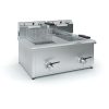 Η διπλή μονοφασική φριτέζα με βρύση Φ1001 2x6-8L αποτελεί ιδανική επιλογή για επαγγελματικές κουζίνες που απαιτούν ταχύτητα, ευκολία και αξιοπιστία. Διαθέτει δύο κάδους λαδιού, χωρητικότητας 6 έως 8 λίτρα ο καθένας, και ξεχωριστές βρύσες για γρήγορη και ασφαλή αλλαγή λαδιού, διευκολύνοντας σημαντικά τον καθαρισμό και τη συντήρηση.