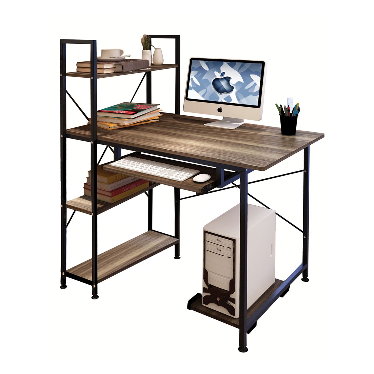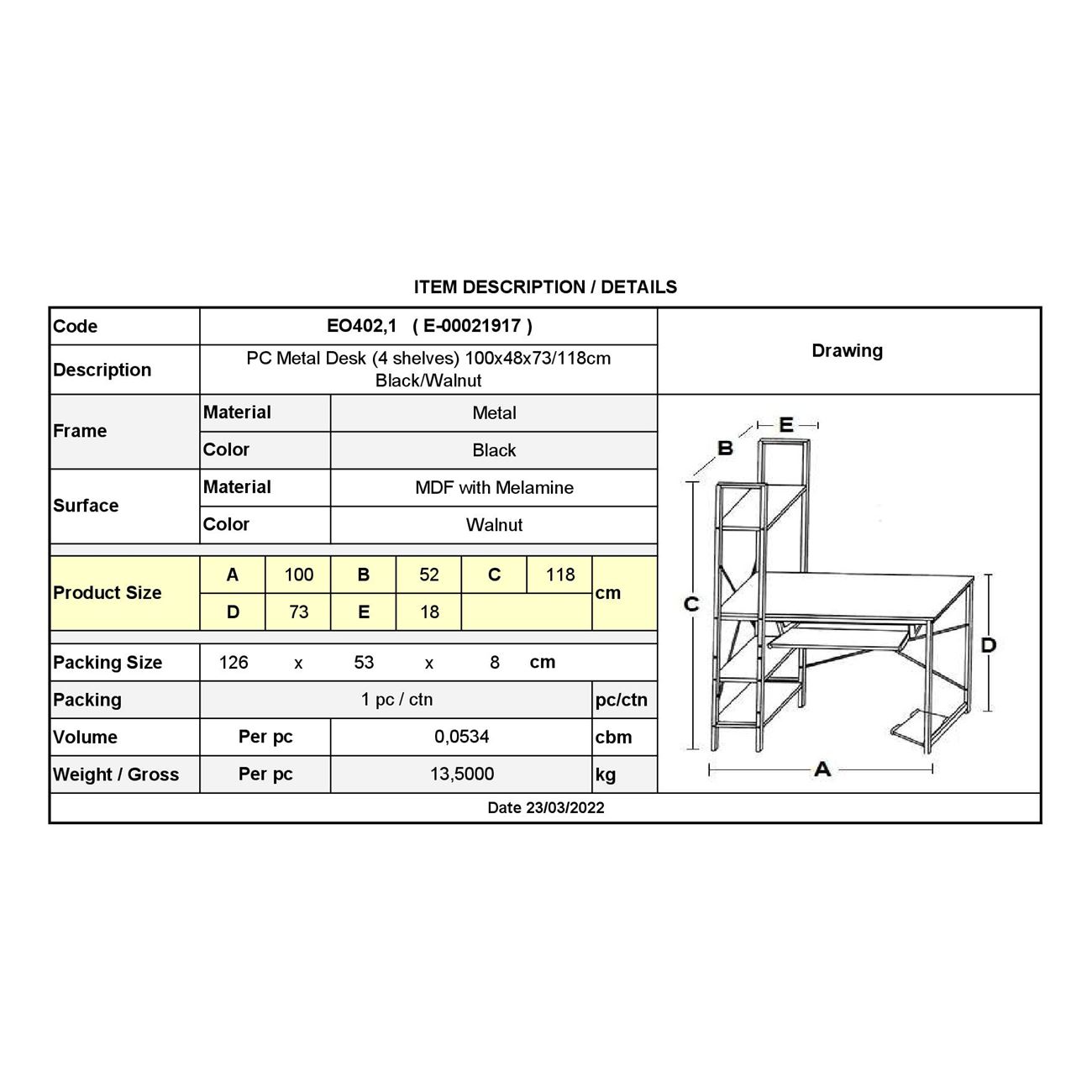 Γραφείο 4 Ράφια Βάση Η/Υ Συρταρωτή Θέση Πληκτρολογίου Μέταλλο Μαύρο Καρυδί - ΕΟ402.1