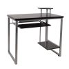 ΓΡΑΦΕΙΟ με Βάση Η/Υ και Ράφι Πληκτρολογίου, Μέταλλο Βαφή Silver, MDF απόχρωση Wenge