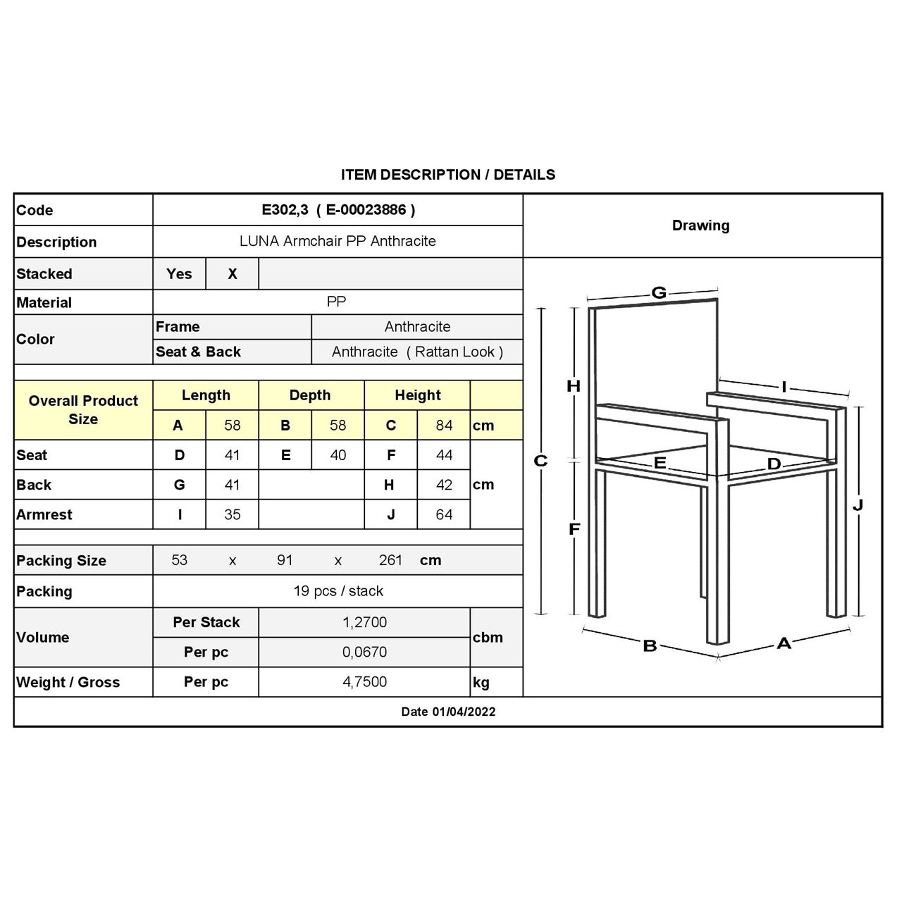 Ε302,3 LUNA Πολυθρόνα PP Ανθρακί