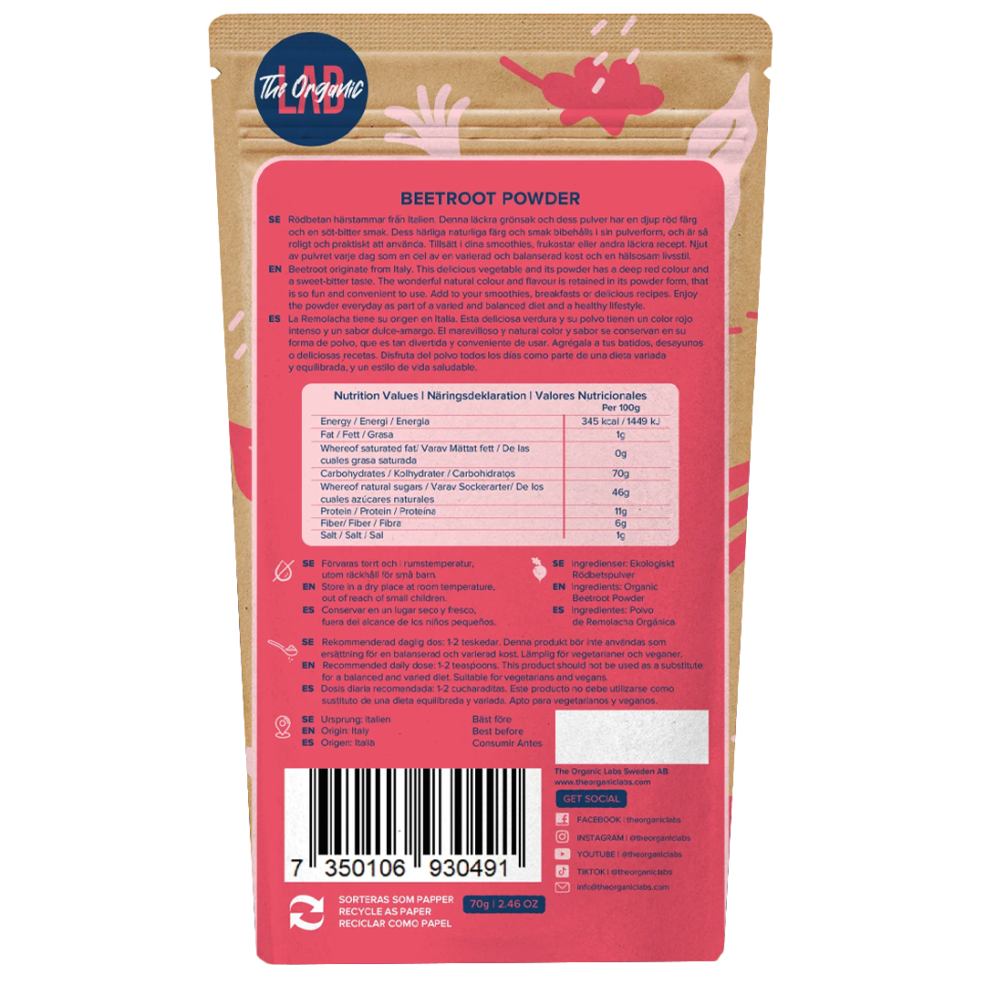 Organic Beetroot Σκόνη για Ροφήματα και Αρτοσκευάσματα 70g