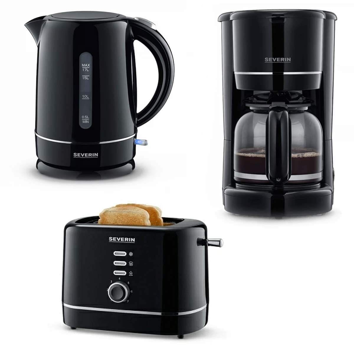 Αναβαθμίστε την κουζίνα σας με το ολοκληρωμένο πακέτο πρωινού Severin σε κλασικό μαύρο χρώμα. Ένας συνδυασμός υψηλής αισθητικής και γερμανικής αξιοπιστίας που καλύπτει κάθε ανάγκη για το ξεκίνημα της ημέρας σας.