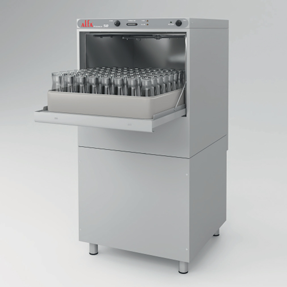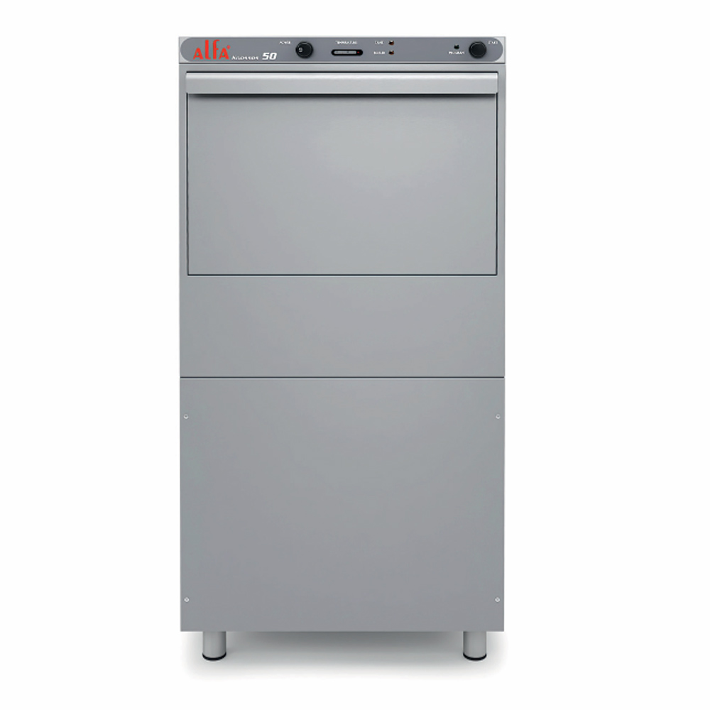 Πλυντήριο πιάτων - ποτηριών Alfa Knossos 50 / 230V της σειράς “Basic” όπου ανήκει σε ηλεκτρομηχανικά επαγγελματικά πλυντήρια πιάτων βαρέως τύπου που συνδυάζουν ευελιξία και αποτελεσματικότητα. Ακολουθούν μια βασική γραμμή, με minimal design και πολλές παραμετροποιήσεις τόσο σε επίπεδο υλικού αλλά και σε επίπεδο ελέγχου των πλύσεων.