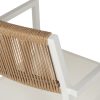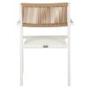 Η πλάτη της πολυθρόνας είναι επενδυμένη με πολυεστερικό RATTAN. Στα περισσότερα έπιπλα κήπου και γενικά σε έπιπλα για εξωτερικούς χώρους χρησιμοποιείται συνθετικό υλικό από PVC, δηλαδή τεχνητές ίνες υψηλής ποιότητας. Αυτό δίνει στην κατασκευή εξαιρετική αντοχή και ανθεκτικότητα σε ακραίες συνθήκες ζέστης ή κρύου.