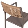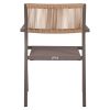 Η πλάτη της πολυθρόνας είναι επενδυμένη με πολυεστερικό RATTAN. Στα περισσότερα έπιπλα κήπου και γενικά σε έπιπλα για εξωτερικούς χώρους χρησιμοποιείται συνθετικό υλικό από PVC, δηλαδή τεχνητές ίνες υψηλής ποιότητας. Αυτό δίνει στην κατασκευή εξαιρετική αντοχή και ανθεκτικότητα σε ακραίες συνθήκες ζέστης ή κρύου.
