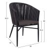 Μοντέρνα πολυθρόνα εξωτερικού χώρου, κατασκευασμένη από σκελετό αλουμινίου σε σκούρη γκρι απόχρωση και επενδυμένη με πλεκτό wicker επίσης σε γκρι απόχρωση.