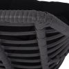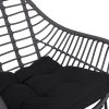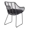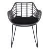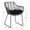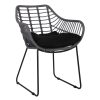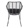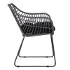 Μοντέρνα πολυθρόνα εξωτερικού χώρου, κατασκευασμένη από μεταλλικό μασίφ σκελετό σε μαύρη απόχρωση και επενδυμένη με πλεκτό wicker σε γκρι απόχρωση.