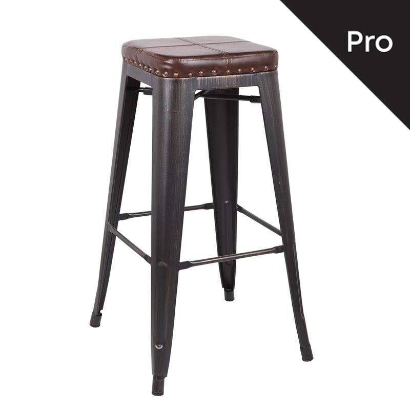 Relix Σκαμπό Bar-Pro, Μέταλλο Βαφή Antique Black, Pu Σκούρο Καφέ - Ε5190P.10