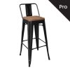 RELIX Wood Σκαμπό Bar-Pro με Πλάτη, Μέταλλο Βαφή Μαύρο, Απόχρωση Ξύλου Dark Oak