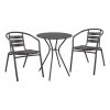 Δύο πολυθρόνες από μεταλλικό σκελετό με κάθισμα και πλάτη από φέτες σε γκρι απόχρωση.