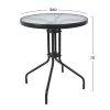 Ένα τραπέζι κατασκευασμένο από μεταλλικό σκελετό σε γκρι απόχρωση με γυάλινη επιφάνεια.