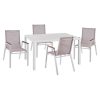 Τέσσερις πολυθρόνες αλουμινίου επαγγελματικών προδιαγραφών με λευκό σκελετό και κάθισμα από γκρι textline.