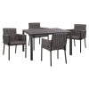 Τέσσερις πολυθρόνες αλουμινίου, επαγγελματικών προδιαγραφών με ανθρακί σκελετό επενδυμένες με φαρδύ wicker σε γκρι απόχρωση.