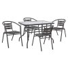 4 πολυθρόνες από μεταλλικό σκελετό με κάθισμα και πλάτη από φέτες σε γκρι απόχρωση.