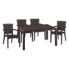 Τέσσερις πολυθρόνες εξωτερικού χώρου με μπράτσα από πολυπροπυλένιο σε μοντέρνο σχεδιασμό και μεγάλη αντοχή σε καφέ απόχρωση. Πολύ στοιβαρής κατασκευής.