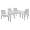 Τέσσερις πολυθρόνες εξωτερικού χώρου με μπράτσα από πολυπροπυλένιο σε μοντέρνο σχεδιασμό και μεγάλη αντοχή σε λευκή απόχρωση. Πολύ στοιβαρής κατασκευής.