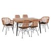 Ένα τραπέζι κατασκευασμένο από μεταλλικό σκελετό σε μαύρη απόχρωση και επιφάνεια επενδυμένη με πλεκτό wicker σε μπεζ απόχρωση.