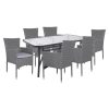 Ένα τραπέζι μεταλλικό εξωτερικού χώρου σε χρώμα γκρι-ανθρακί, με ενσωματωμένο τζάμι ασφαλείας (secure).