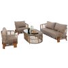 ΗΜ5884.01---Σας παρουσιάζουμε το εντυπωσιακό, νέο και χειροποίητο σετ εξωτερικού χώρου με κυρίαρχο χρώμα το ΜΠΕΖ. Αποτελείται από ένα τραπεζάκι, 2 πολυθρόνες και έναν 3-θέσιο καναπέ. Ένα σετ που θα το λατρέψετε με την πρώτη ματιά. Το όμορφο τραπέζι έχει σχήμα οβάλ και έχει επιφάνεια από γυαλί ασφαλείας, ενώ η βάση του είναι ολόκληρη με σχοινί δεμένο επάνω στον αλουμινένιο σκελετό του. Οι πολυθρόνες είναι εξίσου εντυπωσιακές. Τα πόδια τους είναι 4 κομμάτια από μασίφ ξύλο ΙΡΟΚΟ ενώ το σχοινί επάνω στον αλουμινένιο σκελετό προσδίδει ομοιομορφία με το τραπέζι. Το κάθισμά τους είναι φαρδύ ενώ σε συνδυασμό με τα αναπαυτικά μαξιλάρια τόσο στο κάθισμα όσο και στην πλάτη προσφέρουν ξεκούραση και άνεση. Ο 3-θέσιος καναπές σε παρόμοιο design είναι και αυτός εντυπωσιακός και συμπληρώνει το σετ με τον καλύτερο δυνατό τρόπο. Τα μαξιλάρια σε όλο το σετ είναι επενδυμένα με ποιοτικό ύφασμα σε ΜΠΕΖ χρώμα και διαθέτουν γέμισμα με μέτριας σκληρότητας αφρώδη υλικά για την μεγαλύτερη δυνατή άνεση. Τι άλλο να ζητήσει κανείς για να αναβαθμίσει τον κήπο, το μπαλκόνι ή την αυλή του;