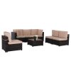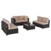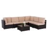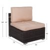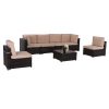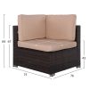 Το ΗΜ5894 είναι ένα πολυμορφικό σετ εξωτερικού χώρου 7 τεμαχίων. Αποτελείται από 4 αναπαυτικότατες καρέκλες σε στυλ πολυθρόνας και 2 καναπεδάκια-γωνίες που δένουν όλο το σύνολο. Το τετράγωνο τραπεζάκι είναι ίδιας αισθητικής και κατασκευής με τα υπόλοιπα μέρη του σετ και η επιφάνειά του διαθέτει άθραυστο γυαλί. Όλο το σετ έχει σκελετό μεταλλικό επενδυμένο με συνθετικό Rattan σε πλέξη Wicker σε ΚΑΦΕ χρώμα. Η πρακτικότητα του σετ και αυτό που του δίνει τον χαρακτήρα του πολυμορφικού οφείλεται στο γεγονός ότι κάθε καρέκλα αλλά και οι δύο γωνίες του σετ, μπορούν να σταθούν ανεξάρτητα δίνοντας πολλές επιλογές διάταξης στο χώρο. Τα μαξιλάρια του καθίσματος, όσο και της πλάτης είναι σε ΜΠΕΖ χρώμα. Ένα σετ, λοιπόν, σε συνδυασμό χρωμάτων ΚΑΦΕ-ΜΠΕΖ που πραγματικά θα απογειώσει οποιονδήποτε εξωτερικό χώρο.