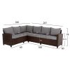 Το TRANQUILITY είναι ένα σετ εξωτερικού χώρου 5 τεμαχίων σε γωνία. Αποτελείται από 2 αναπαυτικότατους καναπέδες και 2 σκαμπό που δένουν όλο το σύνολο. Το ορθογώνιο τραπέζι είναι ίδιας αισθητικής και κατασκευής με τα υπόλοιπα μέρη του σετ και η επιφάνειά του διαθέτει άθραυστο γυαλί. Όλο το σετ έχει σκελετό μεταλλικό επενδυμένο με συνθετικό Rattan σε πλέξη Wicker σε ΚΑΦΕ χρώμα. Τα μαξιλάρια του καθίσματος, όσο και της πλάτης είναι σε ΓΚΡΙ χρώμα προσφέροντας όμορφη διχρωμία, και διαθέτουν φερμουάρ για εύκολο καθάρισμα των υφασμάτων τους.