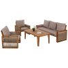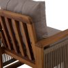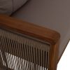 ΗΜ5877.01---Σας παρουσιάζουμε το εντυπωσιακό, νέο και χειροποίητο σετ εξωτερικού χώρου σε ΚΑΡΥΔΙ χρώμα, με τραπεζάκι, 2 πολυθρόνες και 1 τριθέσιο καναπέ. Ένα σετ που θα το λατρέψετε με την πρώτη ματιά. Το όμορφο τραπέζι είναι εξολοκλήρου κατασκευασμένο από μασίφ ξύλο ΙΡΟΚΟ. Οι πολυθρόνες είναι εξίσου εντυπωσιακές. Το σχοινί που υπάρχει στις πλευρές τους είναι πανέμορφο στην όψη ενώ η στιβαρότητά τους είναι εμφανής χάρη στις φαρδιές τετράγωνες βάσεις που το επάνω μέρος τους αποτελεί τα μπράτσα αυτών των πολυθρόνων. Το κάθισμά τους είναι φαρδύ ενώ η πλάτη τους έχει μια ελαφριά κλίση προς τα πίσω πράγμα που επιτείνει την άνεση που προσφέρουν, σε συνδυασμό με τα αναπαυτικά μαξιλάρια τόσο στο κάθισμα όσο και στην πλάτη. Ο τριθέσιος καναπές σε παρόμοιο design είναι, όμως, το πιο εντυπωσιακό κομμάτι αυτού του σετ με τις μεγάλες διαστάσεις του που τον καθιστούν το σημείο αναφοράς. Τα μαξιλάρια σε όλο το σετ είναι επενδυμένα με ποιοτικό ύφασμα σε ΜΠΕΖ χρώμα και διαθέτουν γέμισμα με μέτριας σκληρότητας αφρώδη υλικά για την μεγαλύτερη δυνατή άνεση. Τι άλλο να ζητήσει κανείς για να αναβαθμίσει τον κήπο, το μπαλκόνι ή την αυλή του;