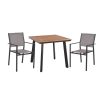ΗΜ11791Σετ εξωτερικού χώρου με τραπέζι με ΑΝΘΡΑΚΙ αλουμινένιο σκελετό και επιφάνεια από polywood και 2 μεταλλικές πολυθρόνες με textilene, σε ΓΚΡΙ χρώμα.