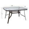 Ένα τραπέζι μεταλλικό εξωτερικού χώρου σε χρώμα καφέ, με ενσωματωμένο τζάμι ασφαλείας (secure).