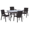 Τέσσερις μοντέρνες πολυθρόνες κατασκευασμένες από ανακυκλώσιμο υλικό πολυπροπυλενίου σε καφέ απόχρωση.
