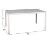 Ένα τραπέζι τραπεζαρίας εξωτερικού χώρου σε λευκή του πάγου απόχρωση με γυαλί στην επιφάνειά του.