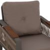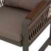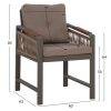 ΗΜ5886.01---Σας παρουσιάζουμε το εντυπωσιακό και νέο σετ τραπεζαρίας εξωτερικού χώρου σε ΓΚΡΙ χρώμα, με τραπέζι και 6 πολυθρόνες. Ένα σετ που θα το λατρέψετε με την πρώτη ματιά. Το μεγάλο τραπέζι με την ξύλινη επιφάνεια από μασίφ ξύλο ΙΡΟΚΟ και τις τραπεζοειδείς φαρδιές βάσεις, είναι πανέμορφο και στιβαρό. Οι πολυθρόνες είναι εξίσου εντυπωσιακές. Το σχοινί που υπάρχει στις πλευρές τους είναι πανέμορφο στην όψη ενώ η στιβαρότητά τους είναι εμφανής χάρη στα πόδια που το επάνω μέρος τους αποτελεί τα μπράτσα αυτών των πολυθρόνων. Το κάθισμά τους είναι φαρδύ ενώ η πλάτη τους έχει μια ελαφριά κλίση προς τα πίσω πράγμα που επιτείνει την άνεση που προσφέρουν, σε συνδυασμό με τα αναπαυτικά μαξιλάρια τόσο στο κάθισμα όσο και στην πλάτη. Τα μαξιλάρια είναι επενδυμένα με ποιοτικό ύφασμα σε ΜΠΕΖ χρώμα που ταιριάζει απίστευτα με το ΓΚΡΙ χρώμα της σύνθεσης αλλά και με το φυσικό χρώμα του σχοινιού. Τι άλλο να ζητήσει κανείς για να αναβαθμίσει τον κήπο, το μπαλκόνι ή την αυλή του;