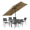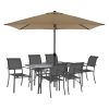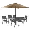 ΗΜ11817.02Σετ εξωτερικού χώρου με τραπέζι με ΓΚΡΙ μεταλλικό σκελετό και γυάλινη θολή ΕΝΙΣΧΥΜΕΝΗ επιφάνεια με τρύπα για ομπρέλα, 6 πολυθρόνες αλουμινίου με textilene σε ΓΚΡΙ χρώμα και ομπρέλα με ΣΚΟΥΡΟ ΓΚΡΙ σκελετό και ύφασμα σε ΜΟΚΑ χρώμα.