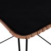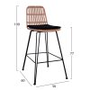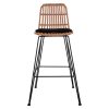 Μοντέρνο σκαμπό εξωτερικού, αλλά και εσωτερικού χώρου, κατασκευασμένο από μεταλλικό σκελετό σε μαύρη απόχρωση και επενδυμένο με πλεκτό wicker σε μπεζ απόχρωση.