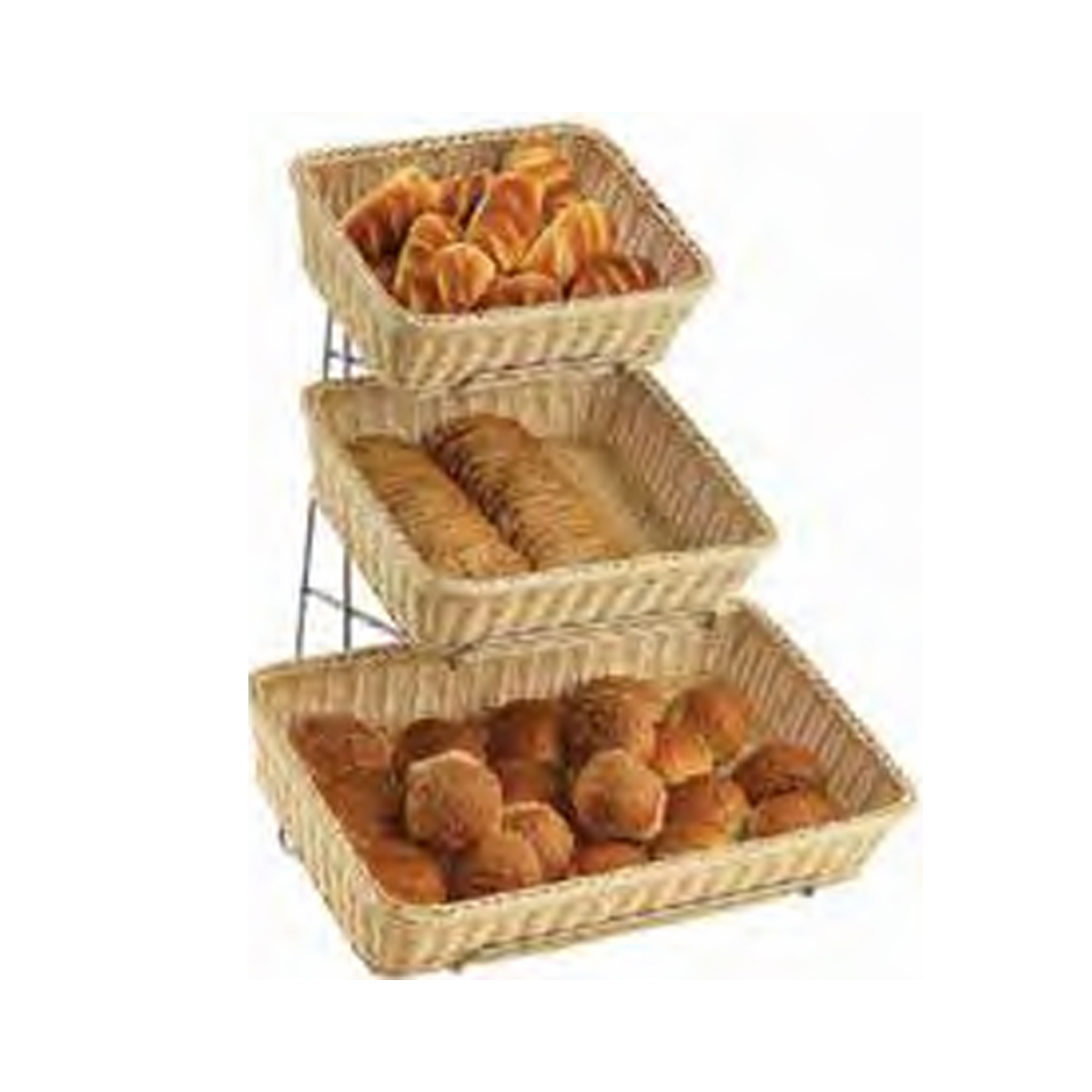 Το σταντ ψωμιού με 3 καλάθια προσφέρει ολοκληρωμένη και ευέλικτη λύση για παρουσίαση και σερβίρισμα ψωμιού, φραντζολών ή αρτοσκευασμάτων σε μπουφέ, εστιατόριο ή εκδηλώσεις. Ο μεταλλικός σκελετός προσφέρει στιβαρότητα και αντοχή, ενώ η ρυθμιζόμενη κλίση επιτρέπει βέλτιστη ορατότητα και πρόσβαση στα προϊόντα.