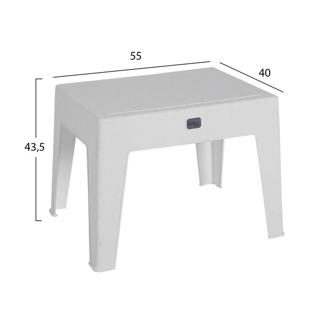 Τραπεζάκι πολυπροπυλενίου με 4 πόδια, σε λευκή απόχρωση.