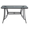 ΗΜ5021.11 Τραπέζι BRAVO εξωτερικού χώρου με ΓΚΡΙ μεταλλικό σκελετό και γυάλινη θολή επιφάνεια! Πρόκειται για πολύ δημοφιλές τραπέζι που δεν λείπει σχεδόν από κανέναν μπαλκόνι ή κήπο. Το BRAVO μάλιστα έρχεται και με τρύπα στο κέντρο για τοποθέτηση ομπρέλας. Είναι ορθογώνιο με γωνίες στρογγυλεμένες ενώ το γυαλί της επιφάνειας είναι ενισχυμένο.