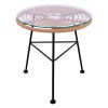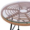 Μοντέρνο τραπέζι εξωτερικού, αλλά και εσωτερικού χώρου, κατασκευασμένο από μεταλλικό σκελετό σε μαύρη απόχρωση και επιφάνεια επενδυμένη με πλεκτό wicker σε μπεζ απόχρωση. Επίσης διαθέτει γυάλινη επιφάνεια.