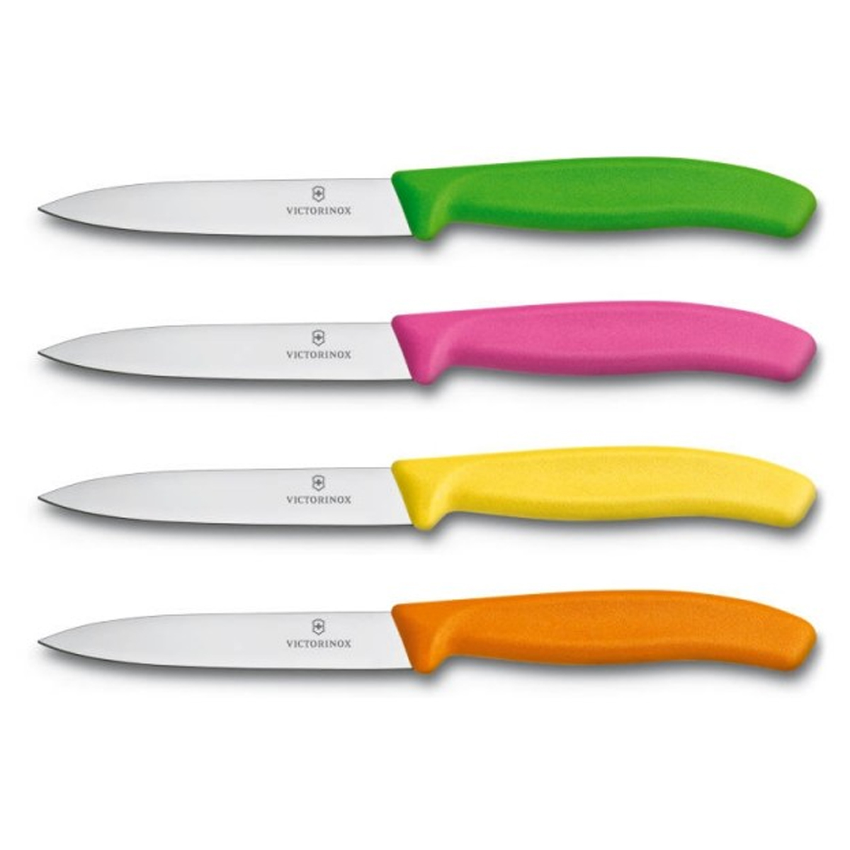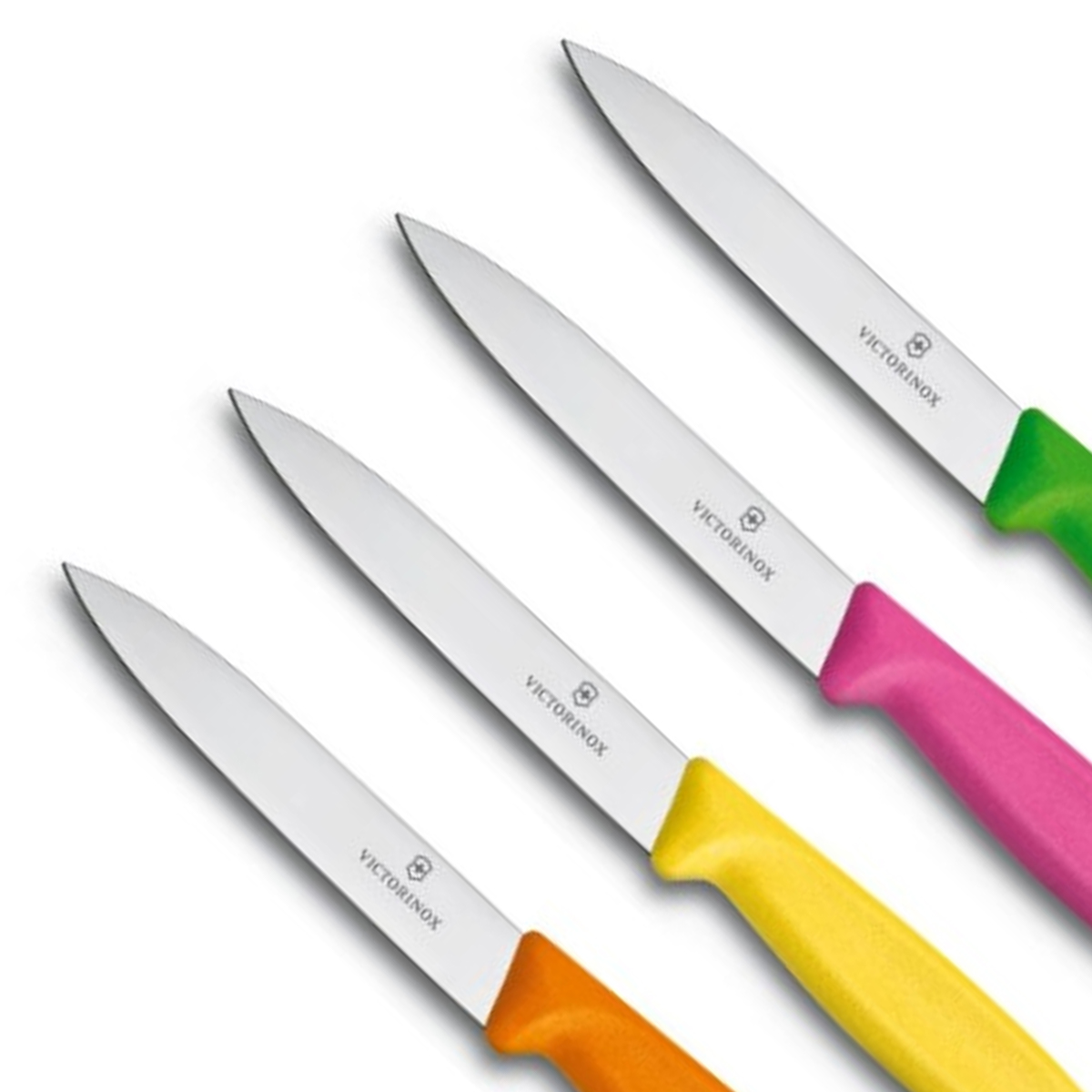 Το μαχαίρι κουζίνας Victorinox Swiss 10cm αποτελεί το ιδανικό πολυεργαλείο για επαγγελματίες και οικιακούς χρήστες που επιθυμούν ακρίβεια στον τεμαχισμό και το καθάρισμα λαχανικών και φρούτων. Η κατασκευή του από υψηλής ποιότητας ανοξείδωτο ατσάλι σε συνδυασμό με τη μυτερή και λεία λεπίδα εξασφαλίζει καθαρές κοπές σε κάθε χρήση. Διαθέσιμο σε τέσσερα ζωηρά χρώματα, επιτρέπει στον χρήστη να ξεχωρίζει τα εργαλεία του ανάλογα με την κατηγορία τροφίμων, προάγοντας την υγιεινή και την οργάνωση στον χώρο εργασίας.