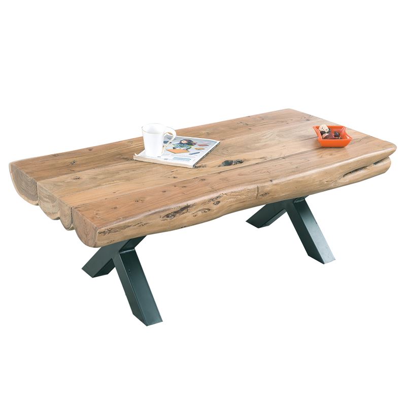 Village Τραπεζάκι Σαλονιού Καθιστικού, Μέταλλο Βαφή Μαύρο, Ξύλο Ακακία Φυσικό ΕΑ7002